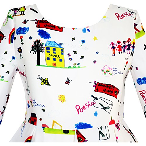 Sunny Fashion JX41 Vestito Bambina Casa Arcobaleno Autobus Stampato Cartoon Inverno 4 Anni