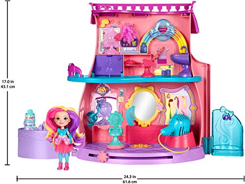18 pezzi tra cui 6 accessori per capelli, 30 punti pop-in, 2 sedie per acconciature, elevatore da salone, specchio rimovibile, forbici finte, 2 pettini.