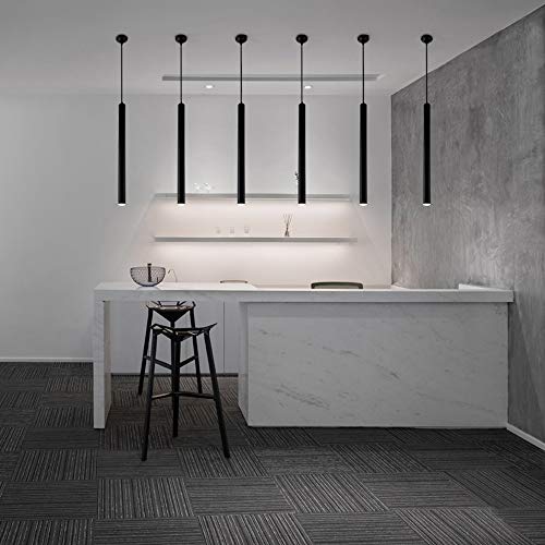 Sunny Lingt 7W Pendent LED Light Fixture moderna Hanging lampada del soffitto, cilindro nero del tubo lungo Lampada a sospensione a soffitto da incasso, for Isola della cucina pranzo Salone Camera ban