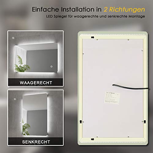 Sunny showers Specchio Bagno LED con Illuminazione a LED Bianco Freddo Risparmio energetico IP44 Classe energetica A + 100x70 cm Anti-Fog, Orella, 600 * 500 millimetri 600 * 500 millimetri Orella