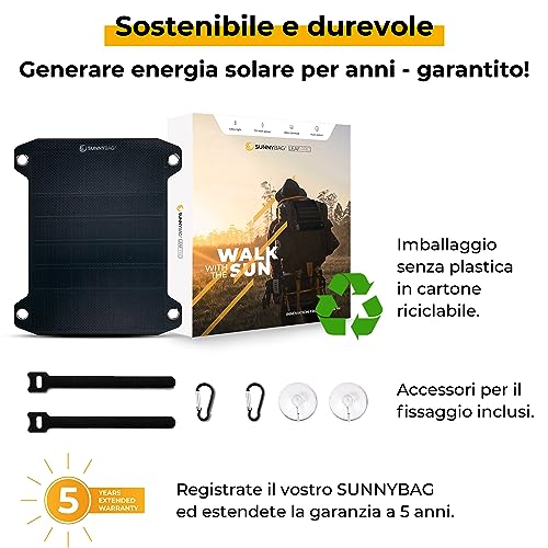 Sunnybag LEAF PRO | Il pannello solare flessibile più potente al mondo | 7,5 Watt | Connessione USB | Caricatore solare per cellulare, smartphone, powerbank | Perfetto per escursioni, campeggio