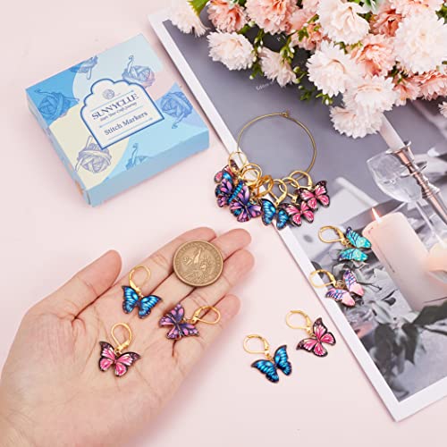 SUNNYCLUE 1scatola 20pezzi Ciondoli Segnapunti Segnapunti Uncinetto Farfalla Smalto Carino Rimovibile Chiusura A Leva Fascino Bloccaggio Pennarelli per Maglieria In Metallo per Tessitura Cucito Trapun