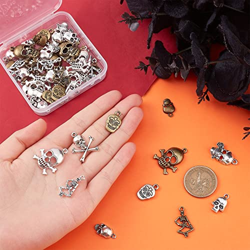 ❤ MATERIALE PREMIUM: i ciondoli con teschi e scheletri sono realizzati in lega, in argento antico e colore bronzo, classico e cool.
