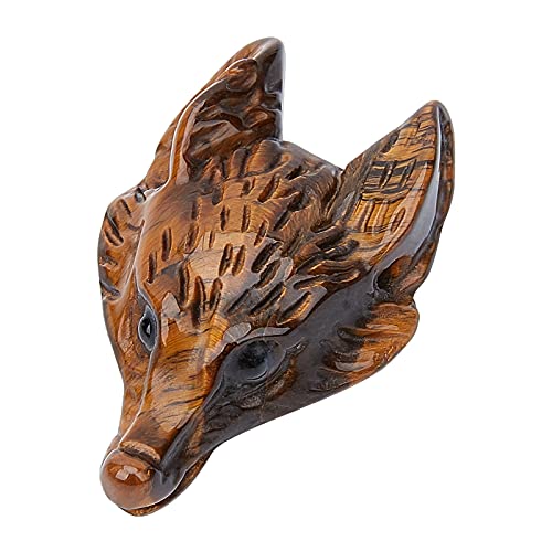 SUNNYCLUE Ciondoli Testa di Lupo Ciondoli In Pietra Occhio di Tigre Naturale Lupi Statua Intagliata A Mano Guarigione Statuetta di Pietre Preziose Tascabili Cristalli con Foro per Collane Creazione