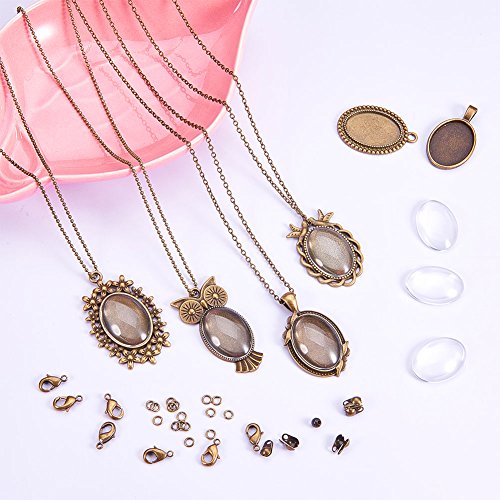 SUNNYCLUE Set 10 Fai-da-Te Kit Vassoio Ciondolo Istruzioni Ovale con Castone Ciondolo con 25x18mm di Vetro Cabochon Clear Dome, 2 catenaccio in Stile Artiglio A Catena E Aragosta, Nichel Libero