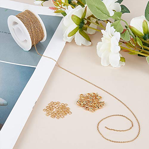 IL PACCHETTO COMPRENDE: Vieni con catene a maglie in acciaio inossidabile oro da 10 m / rotolo con 20 fermagli per aragosta e 50 anelli di salto in acciaio inossidabile