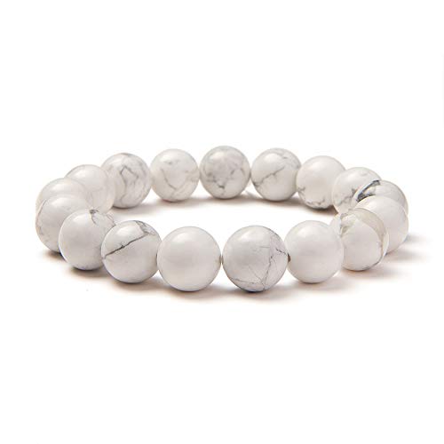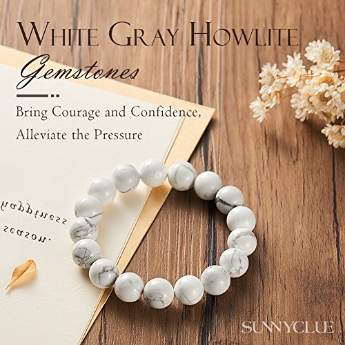 SUNNYCLUE naturale genuino bianco grigio howlite pietre preziose braccialetto elastico 10 mm rotondo perline circa 7 "unisex