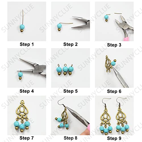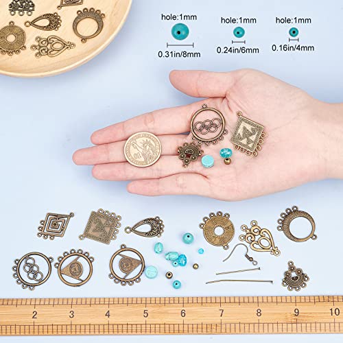 SUNNYCLUE 1 Scatola Fai da Te 10 Paia Kit Creazione di Orecchini Lampadari Charms Connettore Orecchini Lampadario con Perle Sintetiche Turchesi Ganci per Orecchini Donne Principianti, Bronzo Antico