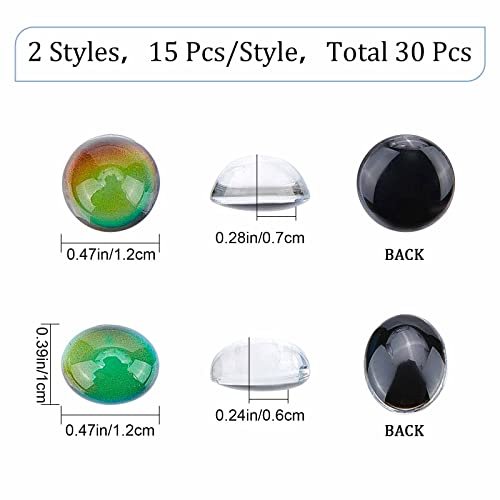 SUNNYCLUE 1 scatola 30 pezzi Cabochon In Vetro Cabochon Tondi con Retro Piatto Da 12 mm Ciondoli Ovali Dell'Umore Che Cambiano Colore Mediante Il Rilevamento Della Temperatura Dorsi Piatti Della Cupol