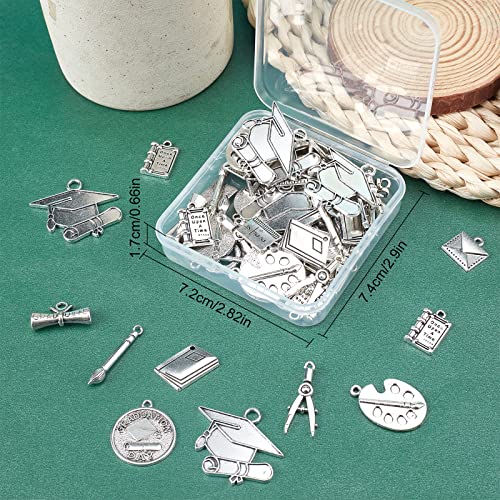 SUNNYCLUE 1 scatola 72 pezzi 12 ciondoli per Laurea In Stile Bulk Grad Charm Insegnante Studente Righello Bussole Ritorno A Scuola Charms per Creazione di Gioielli Charms Grad Cap Decorazione Orecchin