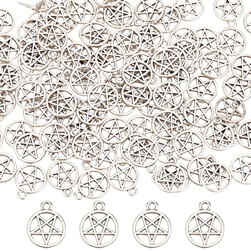 SUNNYCLUE 1 Scatola 100 Pezzi Ciondoli Stella Pentacolo Ciondolo Pentagramma Argento Bulk Strega Protezione Magica Ciondolo Stelle Fortunate In Lega per Creazione di Gioielli Ciondoli Collana Artigian