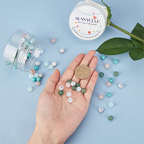SUNNYCLUE 1 Scatola 100 Pezzi 5 Colori Pietra Naturale Perline Sfuse Gemme Curative Chakra Charms Colorato Turchese Opalite Quarzo Rosa Avventurina Verde con Filo di Cristallo Elastico