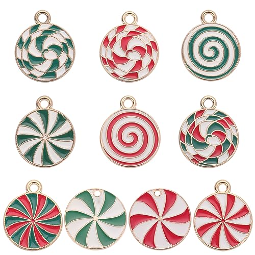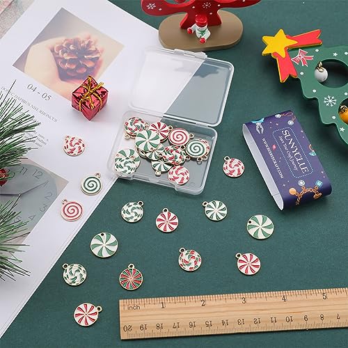 SUNNYCLUE 1 Scatola 40 Pezzi 10 Stili Caramelle Charms Caramelle di Natale Charms Bulk Flatback Round Holiday Charm Lega Smalto Ciondola Placcato In Oro Rosso Charm per Gioielli Creazione di Charms Co