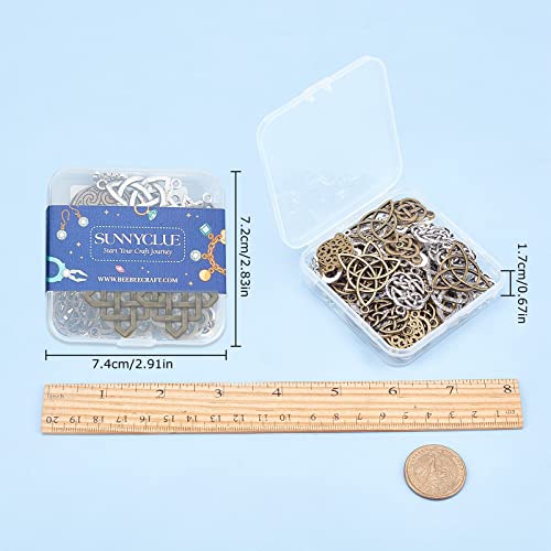 SUNNYCLUE 1 Scatola 56 Pezzi 14 Stili Ciondoli Nodo Nodo Pagano Cinese Fiore Della Vita Connettori Chakra Lega Stile Tibetano Pendenti Cavi per Forniture Artigianali, Bronzo Antico Del Nastro