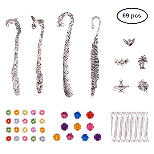 SUNNYCLUE fai da Te 4 Set segnalibri Gancio in Metallo rendendo Kit 4pcs Dolphin Foglia Drago Uccello segnalibro, Perline Colorate assortite, Ciondoli di Fascino Cuore/Albero/flagone/Gufo