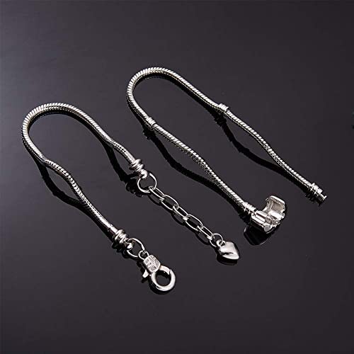 SUNNYCLUE 6 pz 2 Stili 18 cm Braccialetto con Ciondolo A Catena con Serpente Europeo Argento con Classico Fermaglio A Barilotto Chiusura A Cuore per Gioielli Accessori