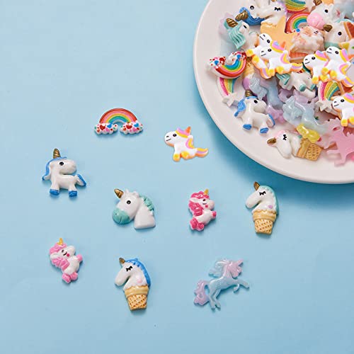 ★80PCS RESINA FLATBACK CABOCHON: Vieni con 80 pezzi di cabochon flatback in resina a tema arcobaleno unicorno. 10 stile, 8pcs / style.