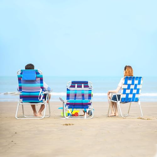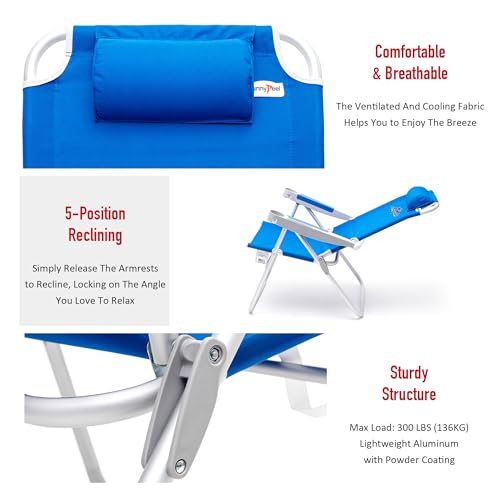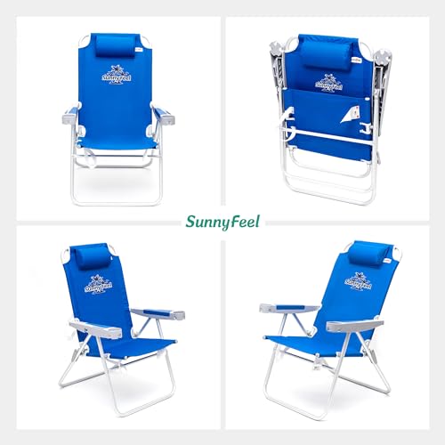 SunnyFeel Sedia da spiaggia pieghevole extra larga, 71 cm, 5 posizioni, piatta, portatile, altezza 43.2 cm, con portabicchieri per esterni, picnic, sedie in sabbia pieghevoli leggere per adulti (blu)