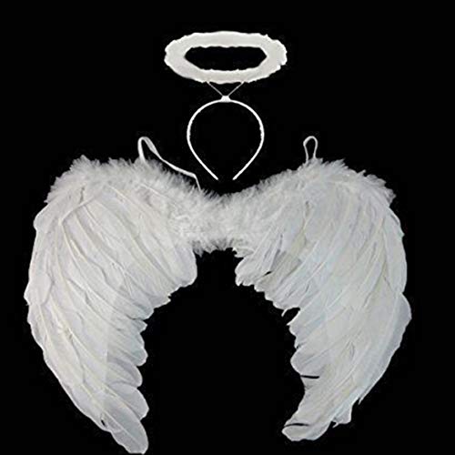 Sunnyflowk 55x40cm Feather Wings Kids Feather Costume Kid Cosplay Wedding Party Halloween Christmas Perm Costume Decoration (White)