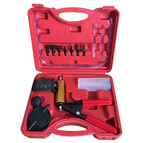 Sunnyflowk Set di tester per pompe per vuoto portatili e kit di spurgo dei freni Auto Moto Pompa per vuoto per auto Adattatore a vite con vacuometro (rosso)