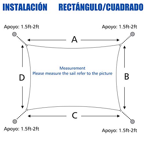 Ancoraggio ad ogni angolo con anelli a D in acciaio inox di grado per una maggiore durata (include 4 cavi di montaggio lunghi 1,5 m