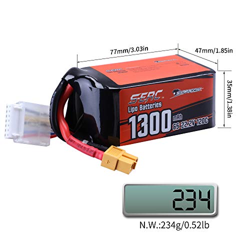 SUNPADOW Confezione da 2 batterie Lipo 6S 22,2 V, 1300 mAh, 120 C, con spina XT60 per elicottero RC FPV Airplane Drone Quadcopter Racing Hobby
