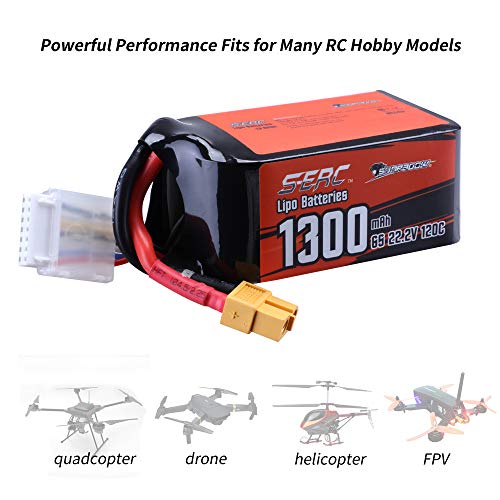 Applicazione: batteria Sunpadow 22,2 V, 1300 mAh, 6S LiPo, adatta per elicottero RC FPV drone Airplane quadcopter racing hobby (solo se la tensione, le dimensioni e la partita di spina, quindi si adatta).
