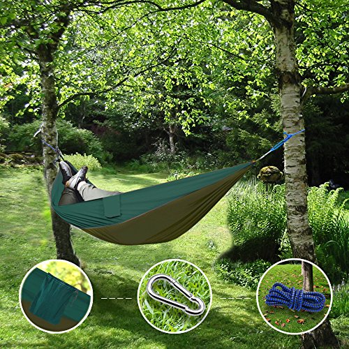 Sunray Nylon Amaca per Escursionismo Giardino Viaggio Campeggio Cortile (108" x 55", Carico de 440lb, Army green e Verde scuro)