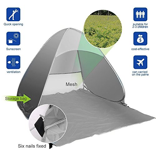 Sunray Portatile Tenda Solare da Spiaggia Campeggio Pesca Protezione UV 50+ Operazione Automatica (Blu + Nero)