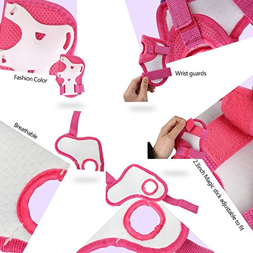 Sunreek Kid da polso ginocchiere roller Blading lame gomito Pad protezioni per pattinaggio come ragazze regalo di compleanno, Natale, confezione da 6 (rosa, M)