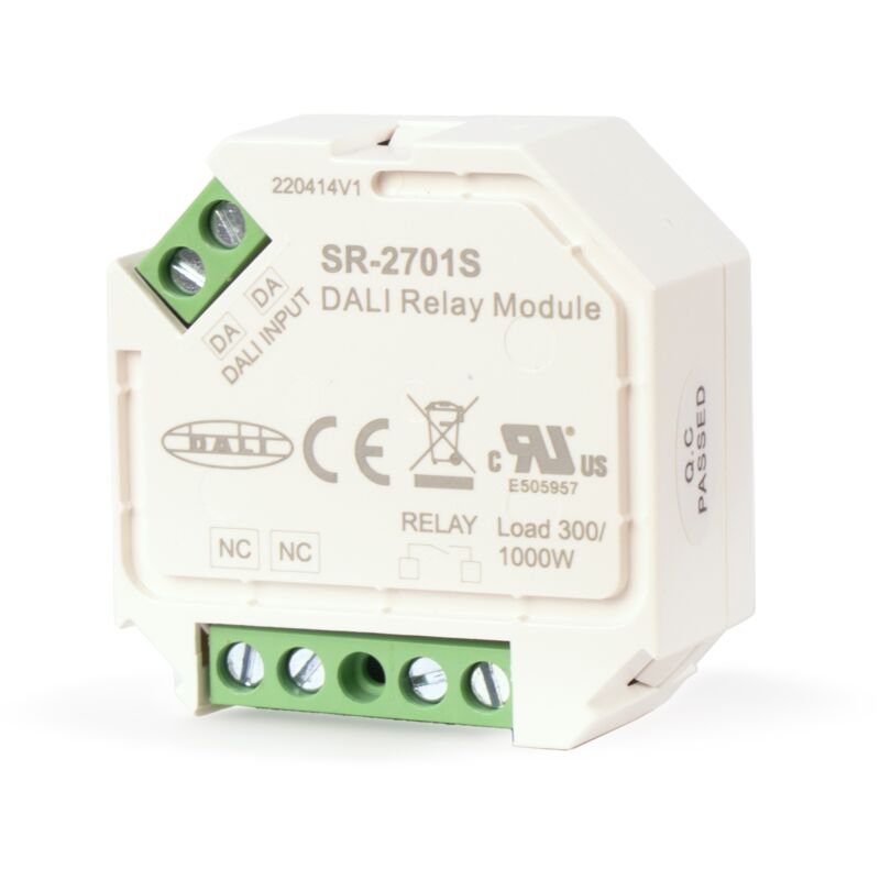 L'SR-2701S è un relè interruttore che disattiva completamente i dispositivi in caso di interruzione della linea di 100-240V/AC o 12/24V/DC. Dimensioni ridotte, facile da installare in una scatola a muro standard. Richiede solo 2 cavi. Indirizzo bus assegnato dal master DALI, singolo, gruppo o comandi con timer di dissolvenza.