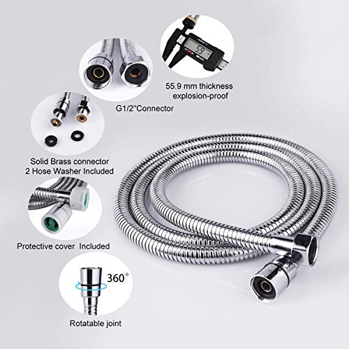 Braccio doccia in ottone massiccio da 40 cm con tubo doccia da 1,8 m in acciaio INOX 304, montaggio a incasso, supporto per soffione doccia in ottone