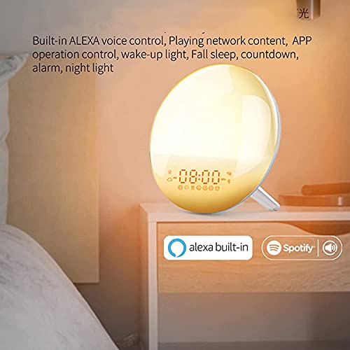 Sunrise Sveglia, Luce Tramonto Lampada con Smart Speaker /App/Controllo Alexa, Funzione di Promemoria, Simulazione della Luce diurna, per Camera da letto, Soggiorno Luci di Lettura Luci Notte