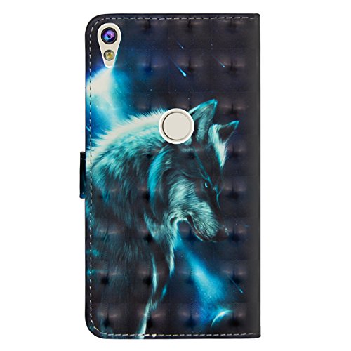 Sunrive Cover Per Alcatel 5080X Shine Lite, Custodia Case con supporto di stand e in pelle artificiale per carte di credito Portafoglio Flip Chiusura Magnetica Protettiva(lupi)