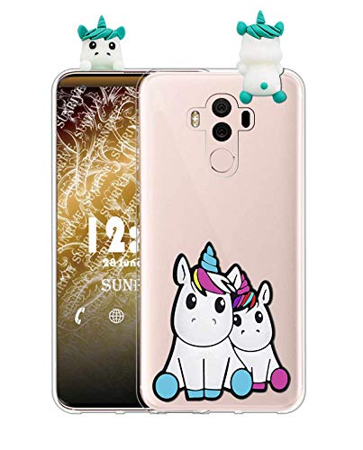 Sunrive Cover per Huawei Mate 10 PRO, Custodia 3D Case in Molle Trasparente TPU Silicone Morbida Flessibile AntiGraffio Protettiva Protector Back custodie Bumper(W1 Unicorno 2)