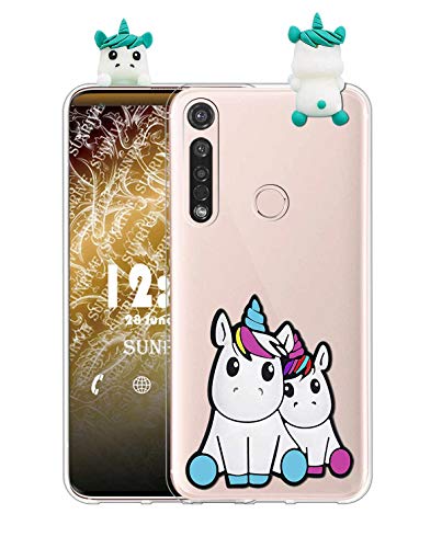 Sunrive Cover per Motorola One Macro, Custodia 3D Case in Molle Trasparente TPU Silicone Morbida Flessibile AntiGraffio Protettiva Protector Back custodie Bumper(W1 Unicorno 2)