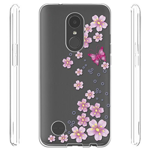 Sunrive Cover per LG K4 2017 5,0 Pollici, Custodia Case in Molle Trasparente TPU Silicone Morbida Flessibile Pelle AntiGraffio Protettiva(TPU Farfalla di Fiore)