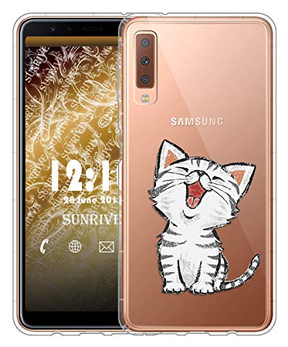 Sunrive Cover per Samsung Galaxy A7 (2018), Custodia Case in Molle Trasparente Silicone Morbida Flessibile AntiGraffio Protettiva Cuscino d'Aria Back custodie(TPU Gatto 2)