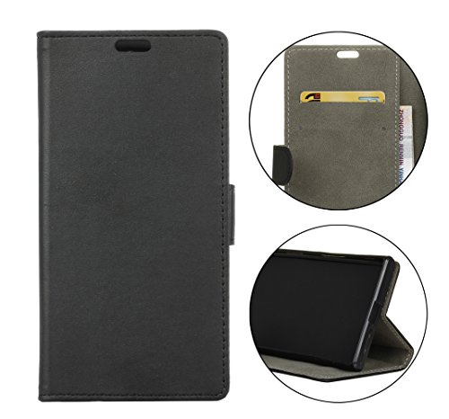 Sunrive Cover per Samsung Galaxy Xcover 4, Custodia con Supporto di Stand e in Pelle per Carte di Credito Portafoglio Flip Chiusura Magnetica Protettiva(Piana Nero)