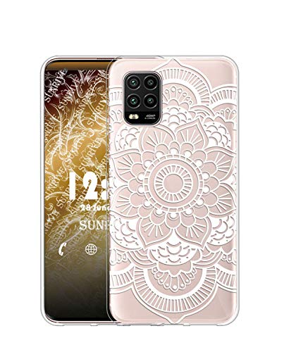 Sunrive Cover Per Xiaomi Mi 10 lite 5G, Custodia Case in molle Trasparente silicone Morbida Flessibile Antigraffio protettiva back custodie(tpu Fiore Bianco 2)