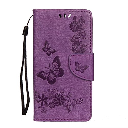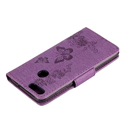 Sunrive Custodia per Huawei P Smart, Cover per Carte di Credito Portafoglio Flip Chiusura Magnetica Protettiva Protettivo Case(Fiore Sollievo Goffratura Porpora)