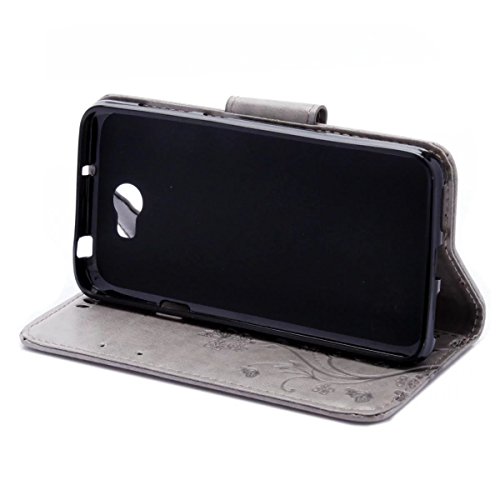 Sunrive per Huawei Y6 II Compact/Y6 2 Compact, Custodia con Supporto di Stand e in Pelle per Portafoglio Flip Chiusura Magnetica Protettiva Protettivo Cover Case (A Fiore Sollievo Goffratura Grigio)