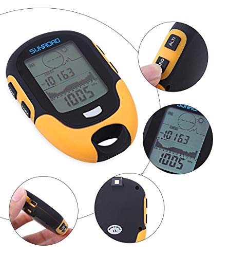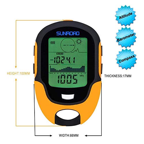 Sunroad Mini Multifunzione Con Barometro Altimetro Bussola Display LCD Termometro Digitale Orologio Igrometro Previsioni Meteo Torcia LED