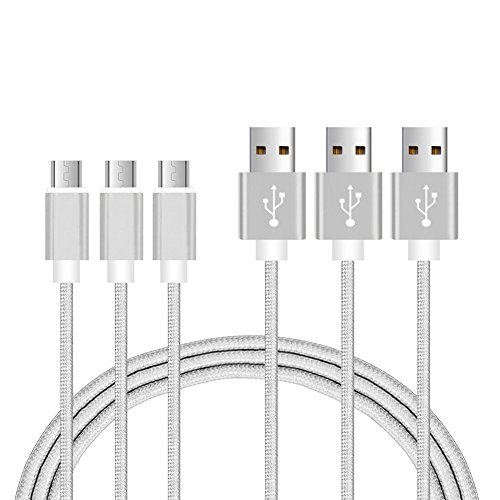 Sunroyal - [ 3-Pezzi ] 1m Cavo Micro USB a USB nylon intrecciato e connettore in alluminio | Cavo di ricarica e dati | per Android, Samsung, HTC, Sony, Nexus, Motorola, Huawei, LG, Wiko, Xiaomi, Kindle e Altro - Argent