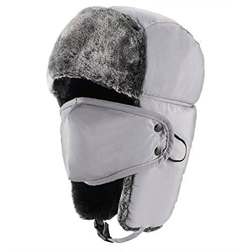 Sunroyal Unisex inverno di Earflap Trapper Trapper Cappelli del bombardiere Berretti Berretti tenere in caldo sci skate altre attività esterne Cappello Cosacco Pelliccia Sintetica Anti-vento Caldo Antipolvere per Ski Inverno in Bicicletta (Grigio)