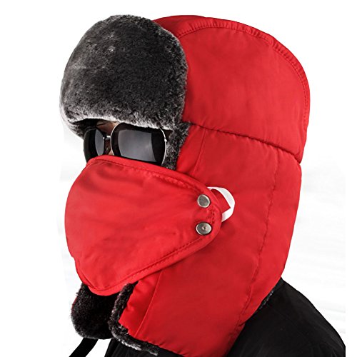 Sunroyal Unisex inverno di Earflap Trapper Trapper Cappelli del bombardiere Berretti Berretti tenere in caldo sci skate altre attività esterne Cappello Cosacco Pelliccia Sintetica Anti-vento Caldo Antipolvere per Ski Inverno in Bicicletta (Rosso)