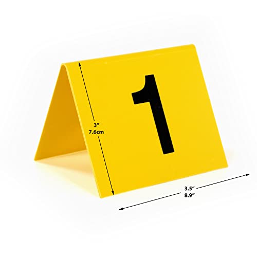 I tuoi pennarelli gialli sono realizzati in PVC spesso e resistente. Ogni biglietto della tenda ha numeri neri stampati su di loro.