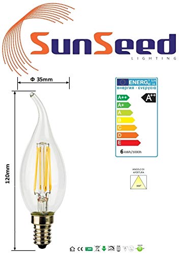SunSeed 4x Lampadina E14 Filamento LED 6W Colpo di Vento760 Lumen Luce Calda 2700K