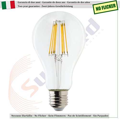SunSeed 4x Lampadina E27 Filamento LED 12W Goccia A75 1500 Lm Luce Calda 2700K
