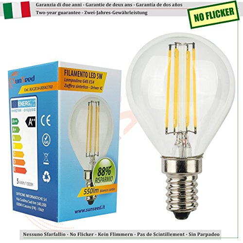 SUNSEED 6x Lampadina E14 Filamento LED 5W Sfera G45 600 Lumen Luce Calda 2700K